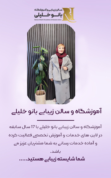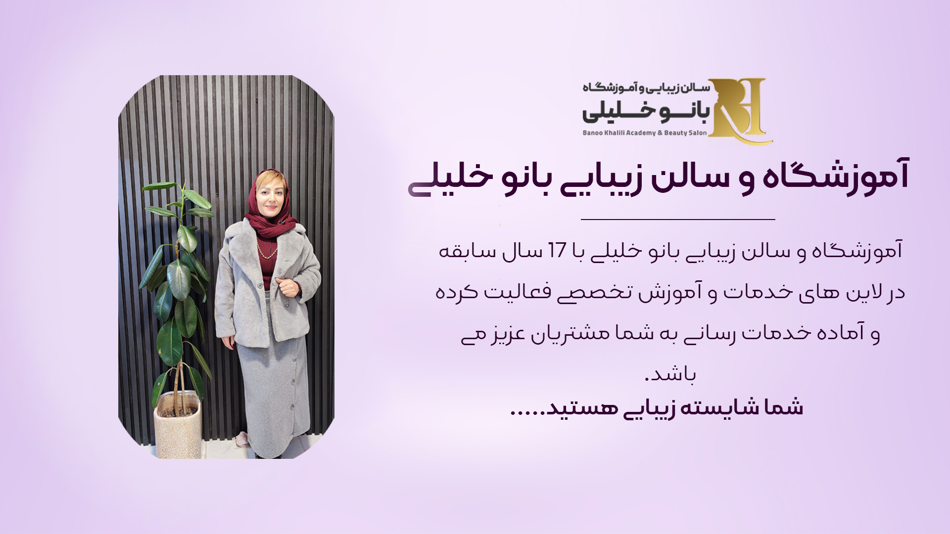 فاطمه خلیلی هستم مدیر و موئسس آموزشگاه و سالن زیبایی بانو خلیلی با بیش از ۱۷ سال سابقه فعالیت در حوزه آموزش و زیبایی